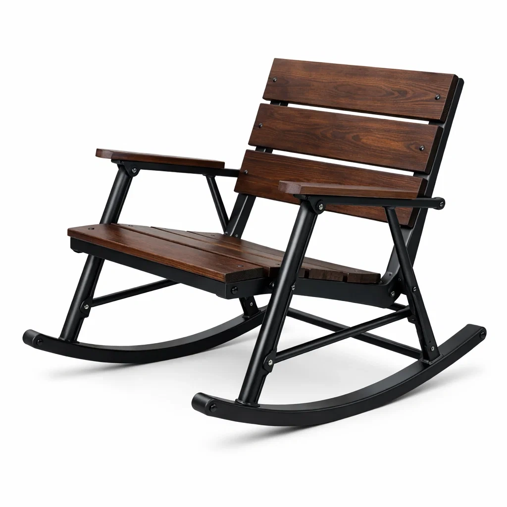 Fauteuil à bascule de terrasse en bois de hêtre et métal noir