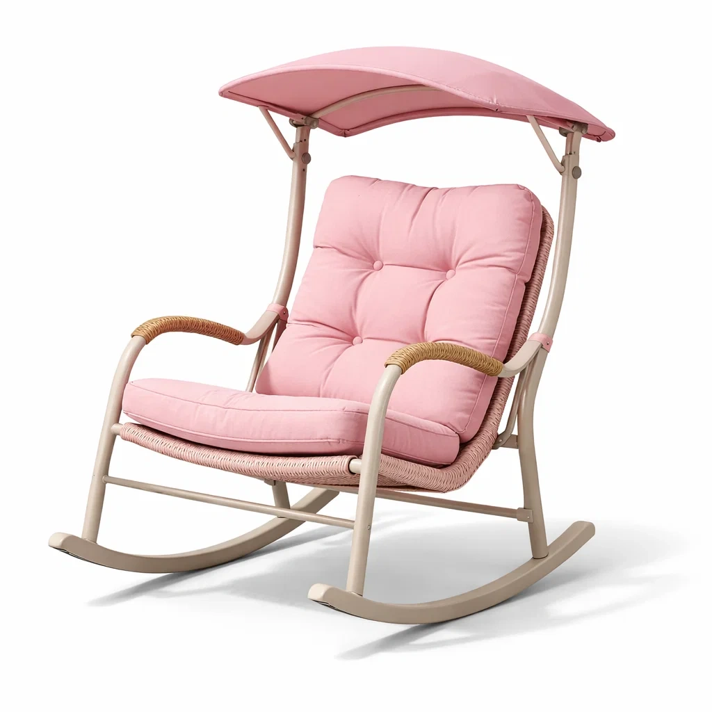 Fauteuil à bascule de terrasse en aluminium et polyester rose avec auvent